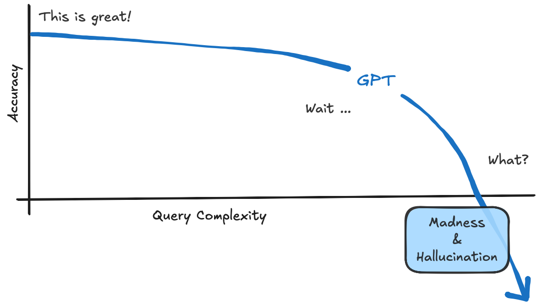 GPTs are excellent when you initially query something, but when you dig deeper, they start to fall apart and get increasingly inaccurate or just provide surface-level responses.